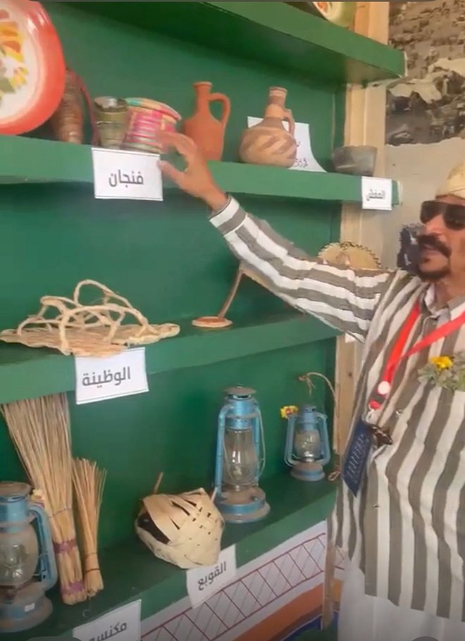 وفي ركن المطبخ الشعبي، تفوح روائح الماضي، وتُعرض أدوات الطهي القديمة، لتكتمل صورة الحياة اليومية بأدق تفاصيلها. وتجاور ذلك لوحات للآثار التاريخية، من أبرزها مسجد القبب، الذي يقف كمعلمٍ روحي وتاريخي يعكس عمق المكان وأصالته.