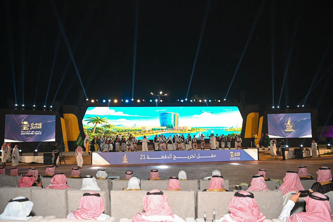 رعى صاحب السمو الملكي الأمير محمد بن عبدالعزيز بن محمد بن عبدالعزيز أمير منطقة جازان، بحضور صاحب السمو الأمير ناصر بن محمد بن عبدالله بن جلوي نائب أمير المنطقة، مساء أمس، حفلَ جامعة جازان بمناسبة تخريج (9,327) خريجًا وخريجة، يمثلون الدفعة الـ(21)، وذلك بالمدرّج المفتوح في المدينة الجامعية.