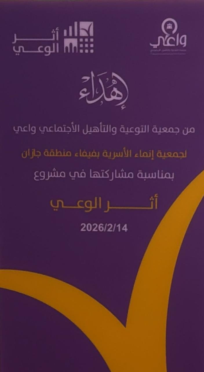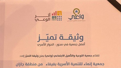 وجاء هذا التكريم تتويجًا لجهود الجمعية في تنفيذ البرنامج الذي انطلق تحت شعار “أثر الوعي”، بمشاركة 20 جمعية متخصصة في مختلف مناطق المملكة، حيث برزت جمعية إنماء الأسرية بفيفاء بأدائها النوعي، وجودة تنفيذها، وأثرها الملموس في تعزيز الوعي الأسري داخل المجتمع.