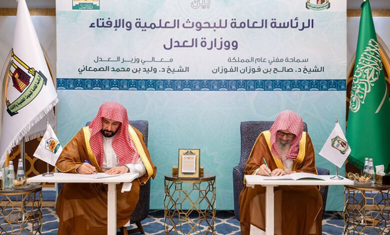 وقّعت الرئاسة العامة للبحوث العلمية والإفتاء ووزارة العدل، اليوم، مذكرة تفاهم وتعاون تهدف إلى دراسة آلية التعامل مع وقائع الطلاق ومعالجتها وتوثيقها، بما يعزز التكامل بين الجهتين، ويطوّر كفاءة الإجراءات المرتبطة بالقضايا الأسرية.