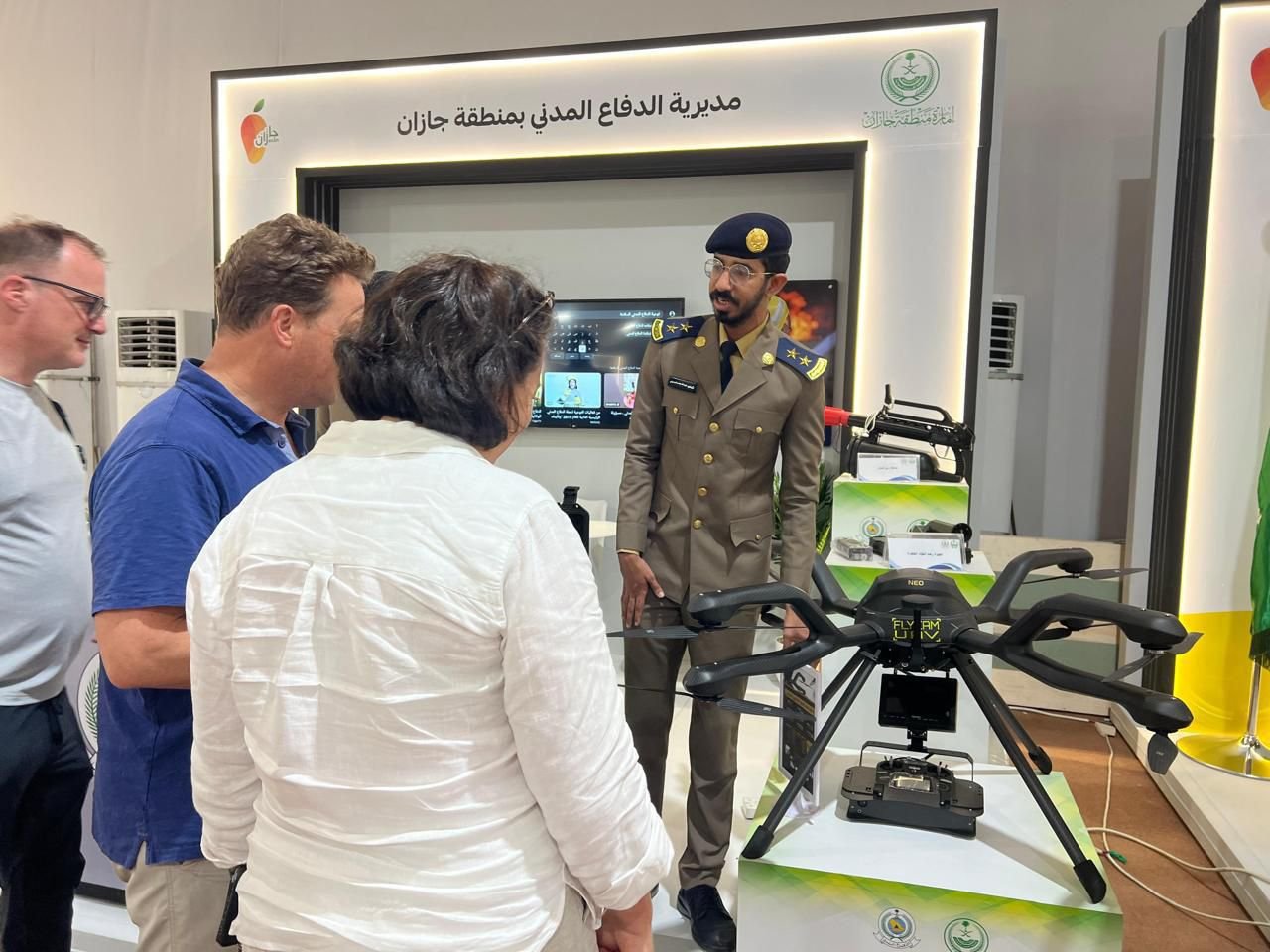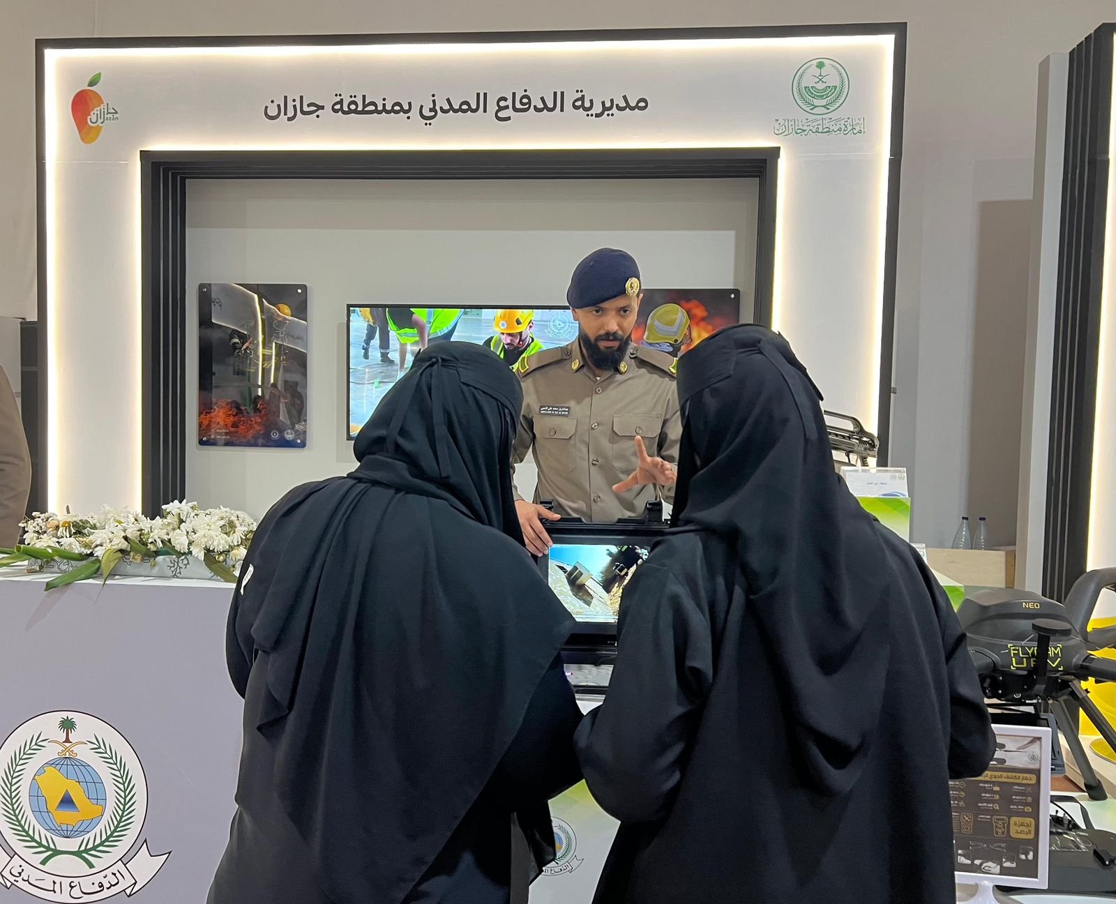 ويستعرض الدفاع المدني لزوار المعرض عددًا من التقنيات الحديثة، وأدوات السلامة الواجب توافرها بالمنشآت.