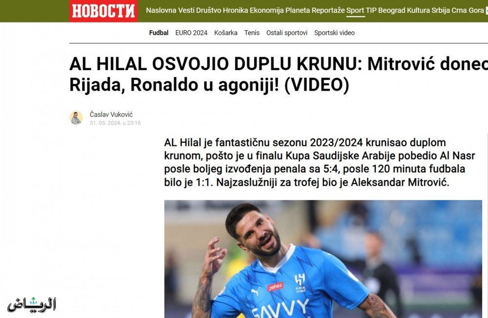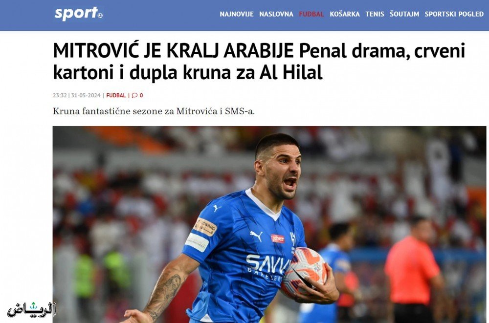 بدورها، قالت صحيفة “sport.alo” الصربية: “لقد رأينا كل ما يمكن أن تقدمه كرة القدم في المواجهة بين الهلال والنصر في نهائي كأس الملك السعودي، حيث فاز بركلات الترجيح الفريق الذي يضم ألكسندر ميتروفيتش وسيرجي ميلينكوفيتش سافيتش”.