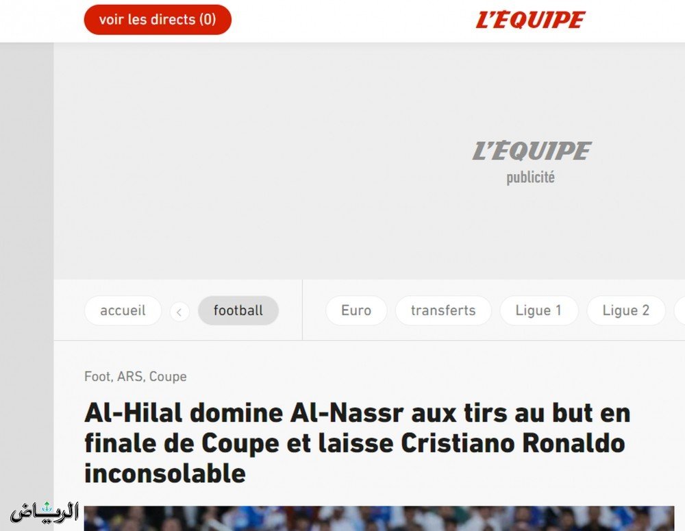 في سياق متصل، شددت صحيفة “ليكيب” الفرنسية على أن الهلال أظهر هيمنته أمام النصر خلال الموسم الحالي، لافتة إلى أن خسارة لقب كأس الملك السعودي جعلت رونالدو يشعر بالمرارة، وتركته في وضع لا يُطاق.