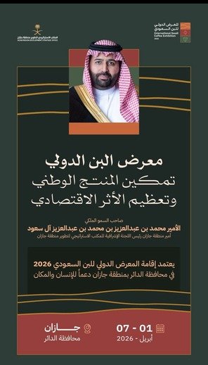 اعتمد صاحب السمو الملكي الأمير محمد بن عبدالعزيز بن محمد بن عبدالعزيز آل سعود، أمير منطقة جازان، ورئيس اللجنة الإشرافية للمكتب الاستراتيجي لتطوير المنطقة، إقامة المعرض الدولي للبن السعودي 2026، وذلك في محافظة الدائر بمنطقة جازان، خلال الفترة من 1 إلى 7 أبريل 2026.