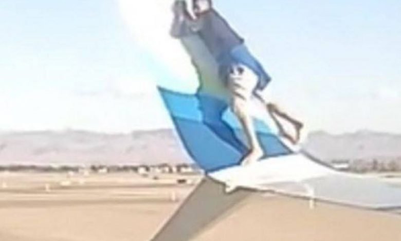 بينما أغلقت الطائرة أبوابها استعداداً للإقلاع، تسلق شاب جناحها الأيسر، وخلع نعليه ثم رقص ملوحا بيده في الهواء، كأنما يلتقط «سيلفي»، ما استنفر الشرطة وأخر إقلاع الطائرة 4 ساعات.