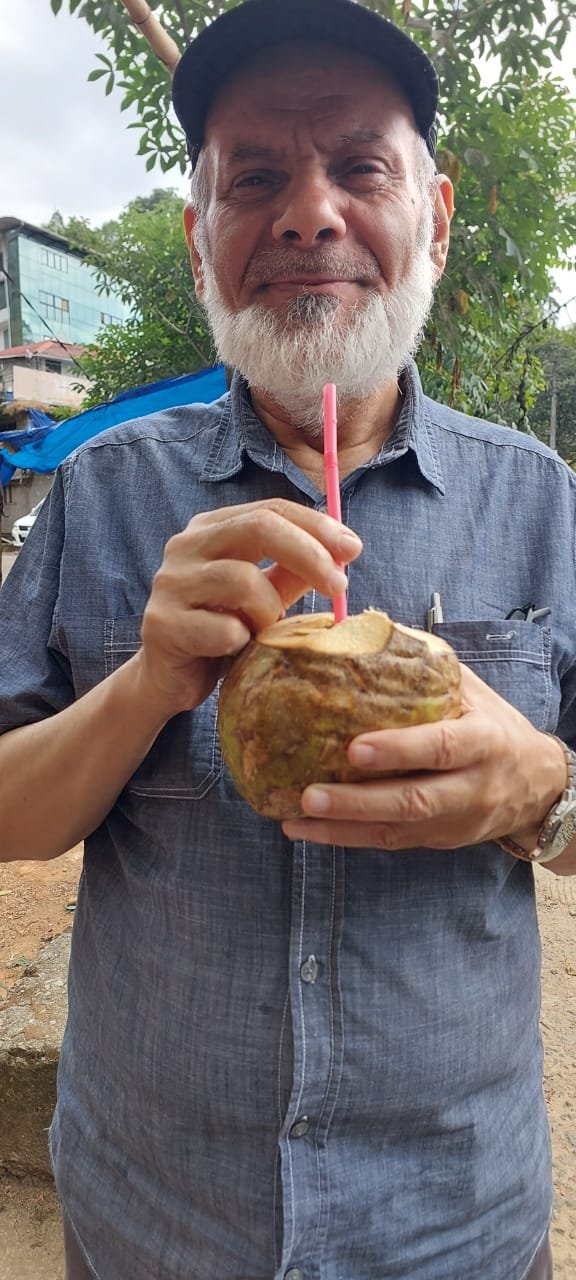 وتذوقنا بعض شراب ثمار جوز الهند، وطريقة اعدادها وهي مغلفة بقشرة قوية جدا، فيفلقها البائع بساطور منحن خاص بذلك، وبعد عدة ضربات يصل إلى لبها الابيض، الذي يحدث فيه ثقبا يدخل منه مصاصا من البلاستيك، لتشرب منه الماء الموجود داخلها، وله ذوق مستساغ وحلاوة لا بأس بها، وإذا رغبت بعد فراغك من شرب مائها، اكمل لك تفليقها لاستخراج بقية لحائها الابيض اللذيذ.