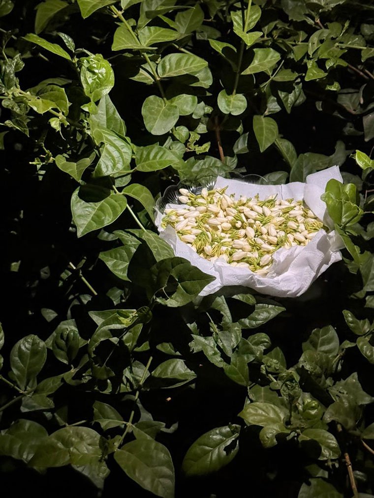 تلتها جولة بين مزارع الفل، حيث الطبيعة تهمس بأسرارها، والأزهار تحكي حكاياتها البيضاء، في مشهدٍ يفيض سكينةً ودهشة. هناك، لم يكن الحضور مجرد زوار، بل كانوا جزءاً من لوحةٍ حية، تتنفس عبق المكان وتتمايل مع نسماته.