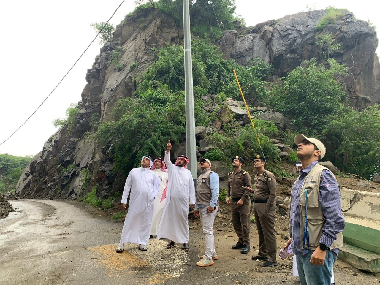 فريق من المساحة الجيولوجية يقف على الإنهيارت بفيفاء