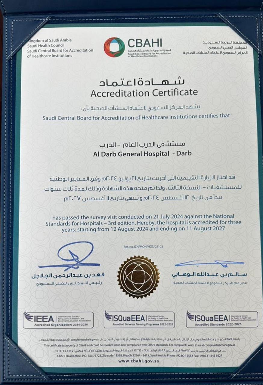 مستشفى الدرب العام يحصل على الاعتماد من ” سباهي ”