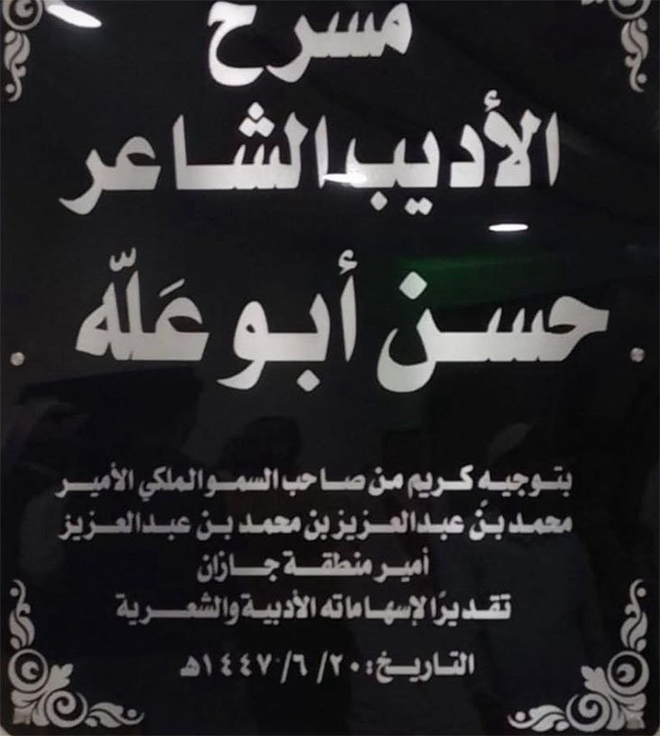 وبتوجيهٍ كريم من صاحب السمو الملكي الأمير محمد بن عبدالعزيز بن محمد بن عبدالعزيز أمير منطقة جازان، تتقدّم جازان بخطى الوفاء،وتقول لشاعرها: ما زال صوتك حيًّا،وما زال أثرُك يصلحُ لأن يكون مسرحًا للأجيال.