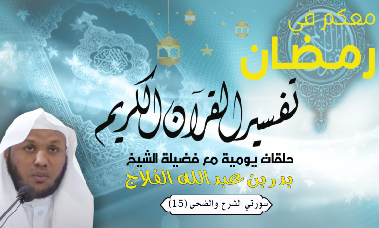 الرئيسية/دين ودنيا/معكم في رمضان…يوميات قرآنية (15) تفسير سورتي الشرح والضحىدين ودنيا معكم في رمضان…يوميات قرآنية (15) تفسير سورتي الشرح والضحىحلقات يومية مع فضيلة الشيخ/بدر بن عبد الله الفلاج16 أبريل، 2022 46 أقل من دقيقة الوسومالشيخ بدر الفلاج تفسير سورتي الشرح والضحى معكم في رمضان يوميات قرانية16 أبريل، 2022 46 أقل من دقيقة فيسبوك X لينكدإن واتساب تيلقرام ڤايبر مشاركة عبر البريد طباعة